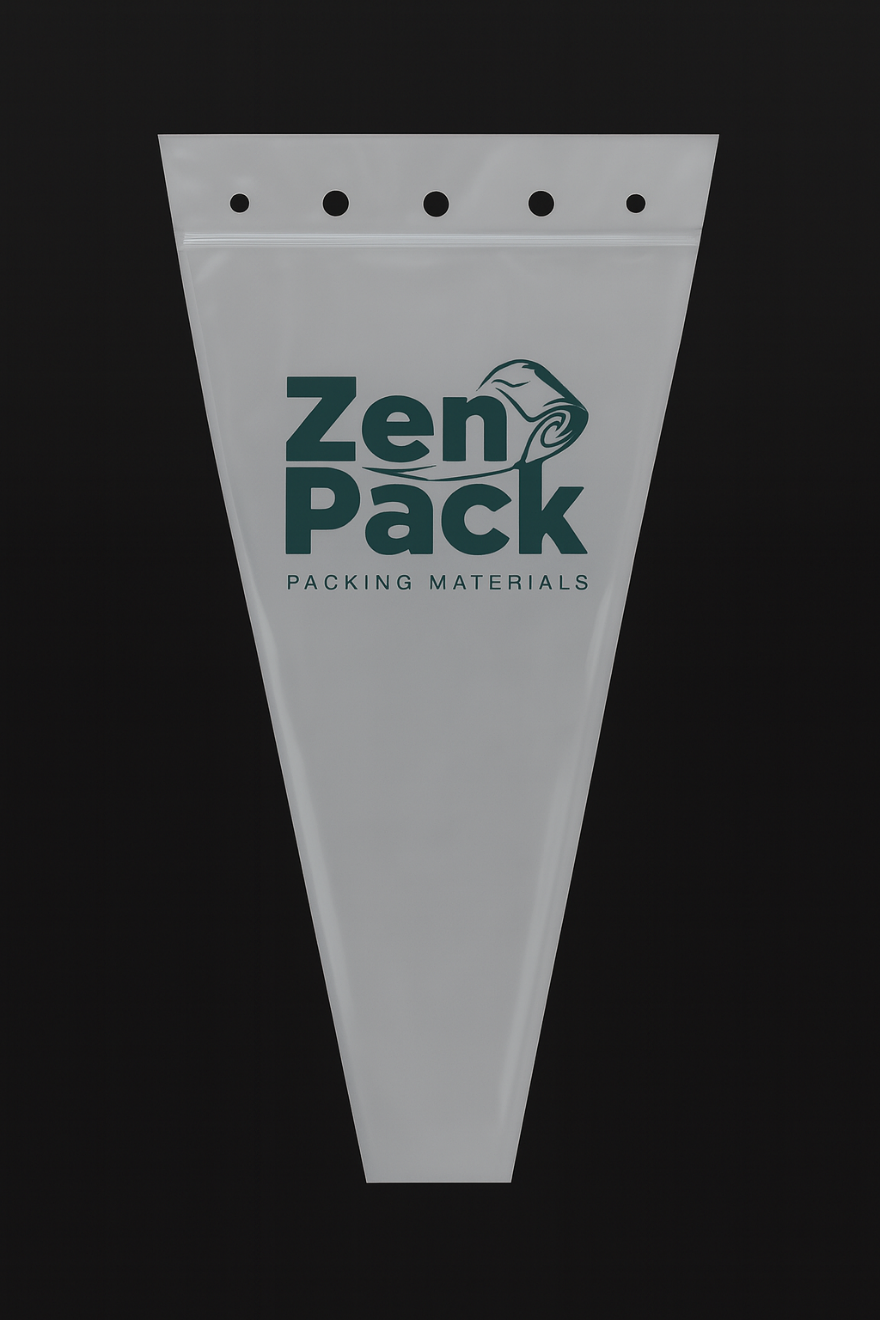 Konik plastik çiçek torbaları, çiçeklerin şık ve güvenli bir şekilde sunulmasını sağlayan estetik ambalaj çözümleridir. Konik formu sayesinde özellikle tek dal veya küçük buket çiçeklerin formunu korur ve sunum kalitesini artırır. Şeffaf ya da baskılı seçenekleriyle çiçeklerin görsel güzelliğini ön plana çıkarır.